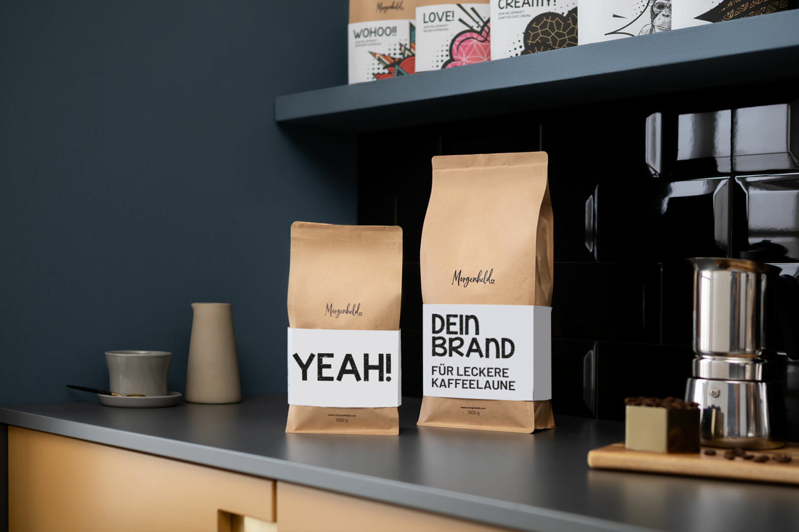 Einfach Logo, Name oder Slogan drauf und schon machst du dich jeden Morgen unvergesslich! Deine Kunden mit den personalisierbaren Werbegeschenken und Firmengeschenken von MORGENHELD werden es lieben. Yeah!